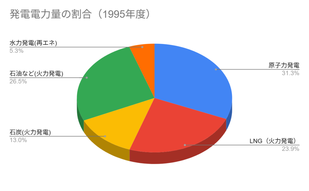 1995年は、主に火力発電と原子力発電に頼っていました。